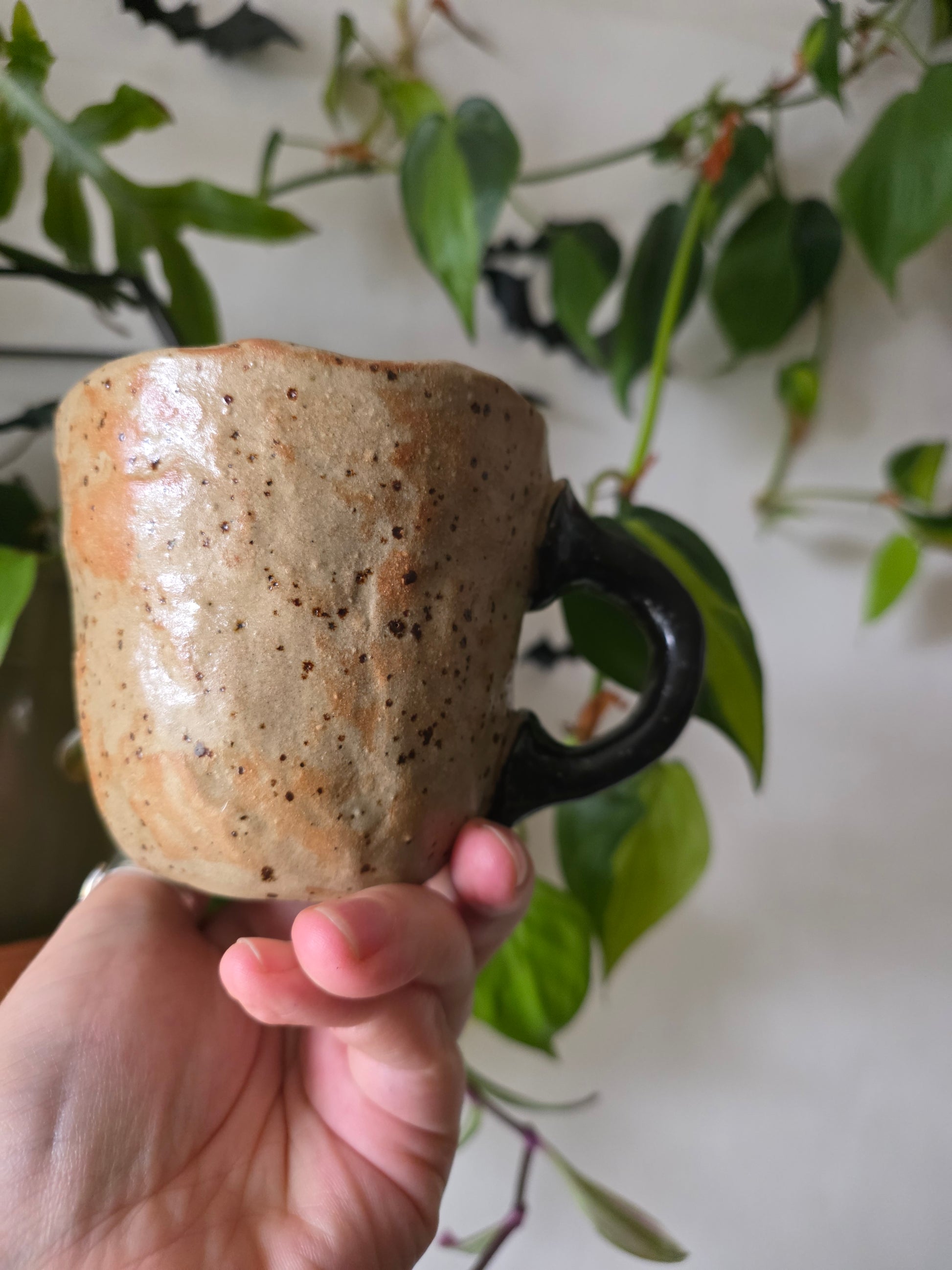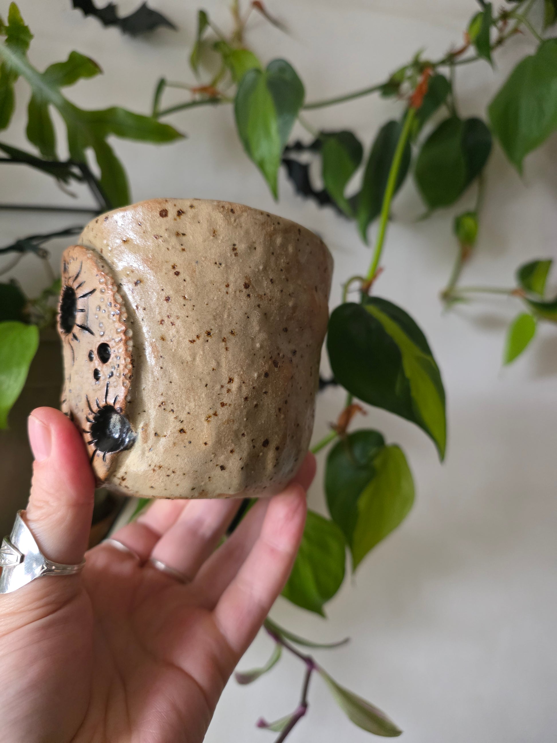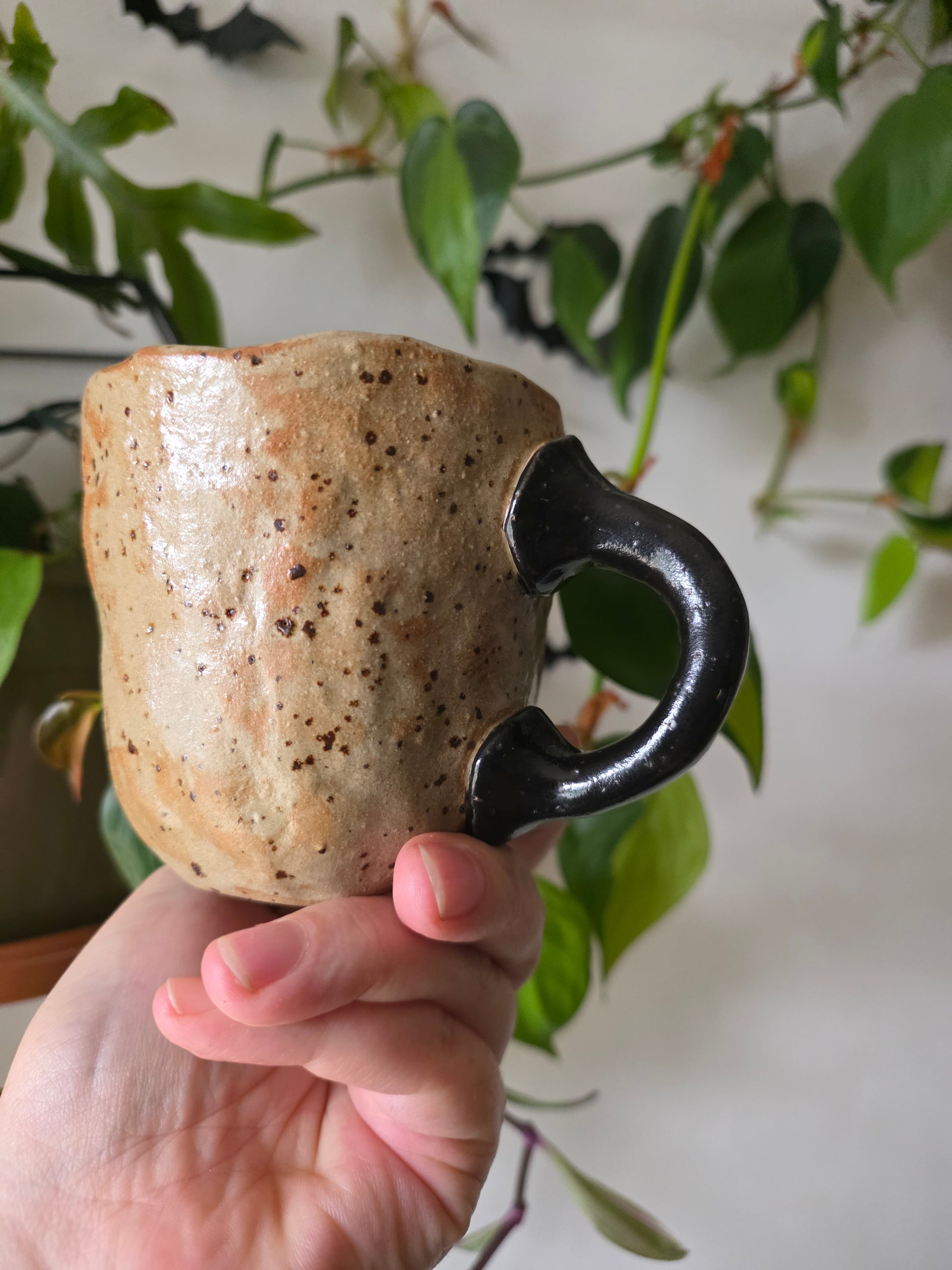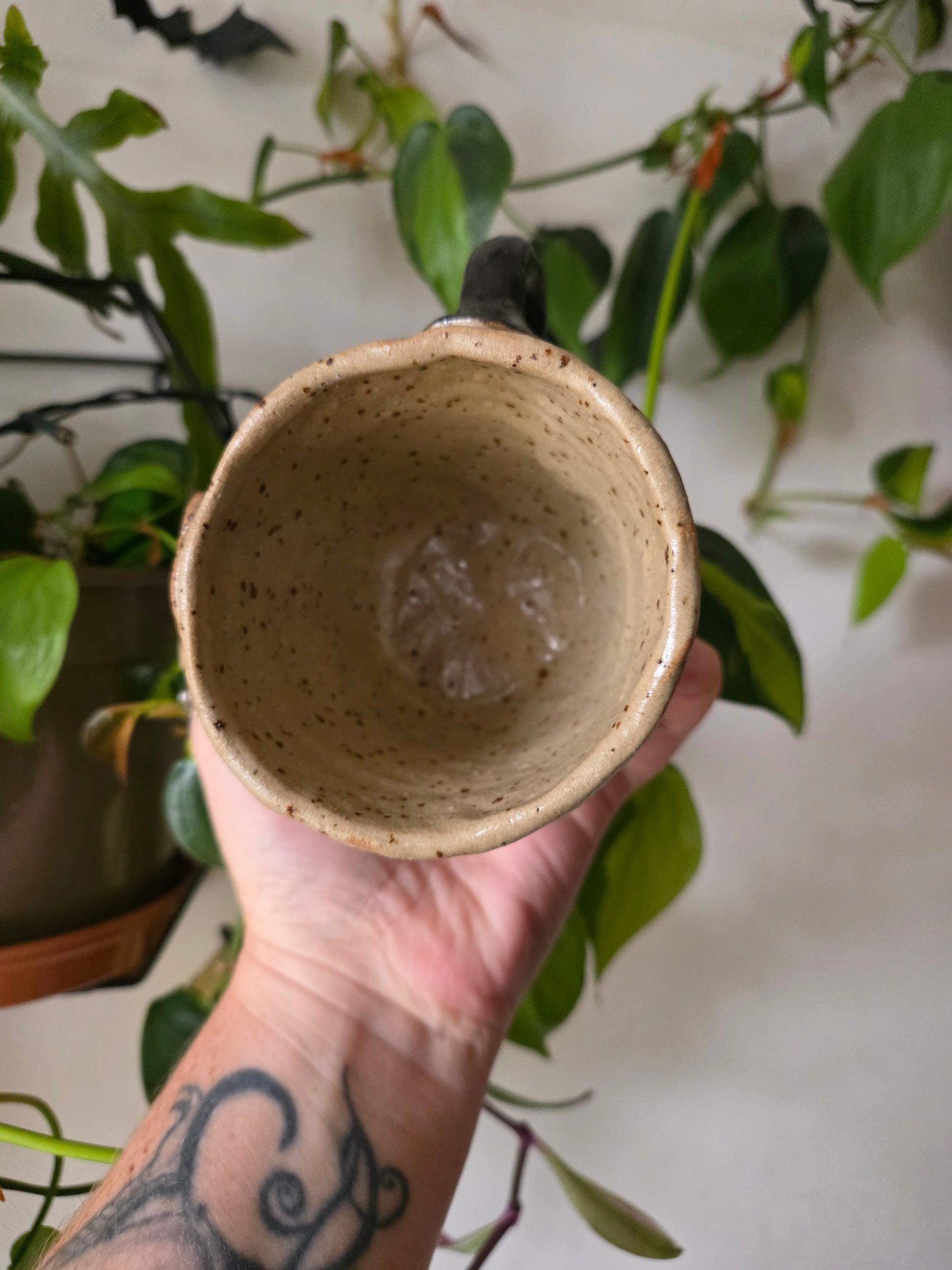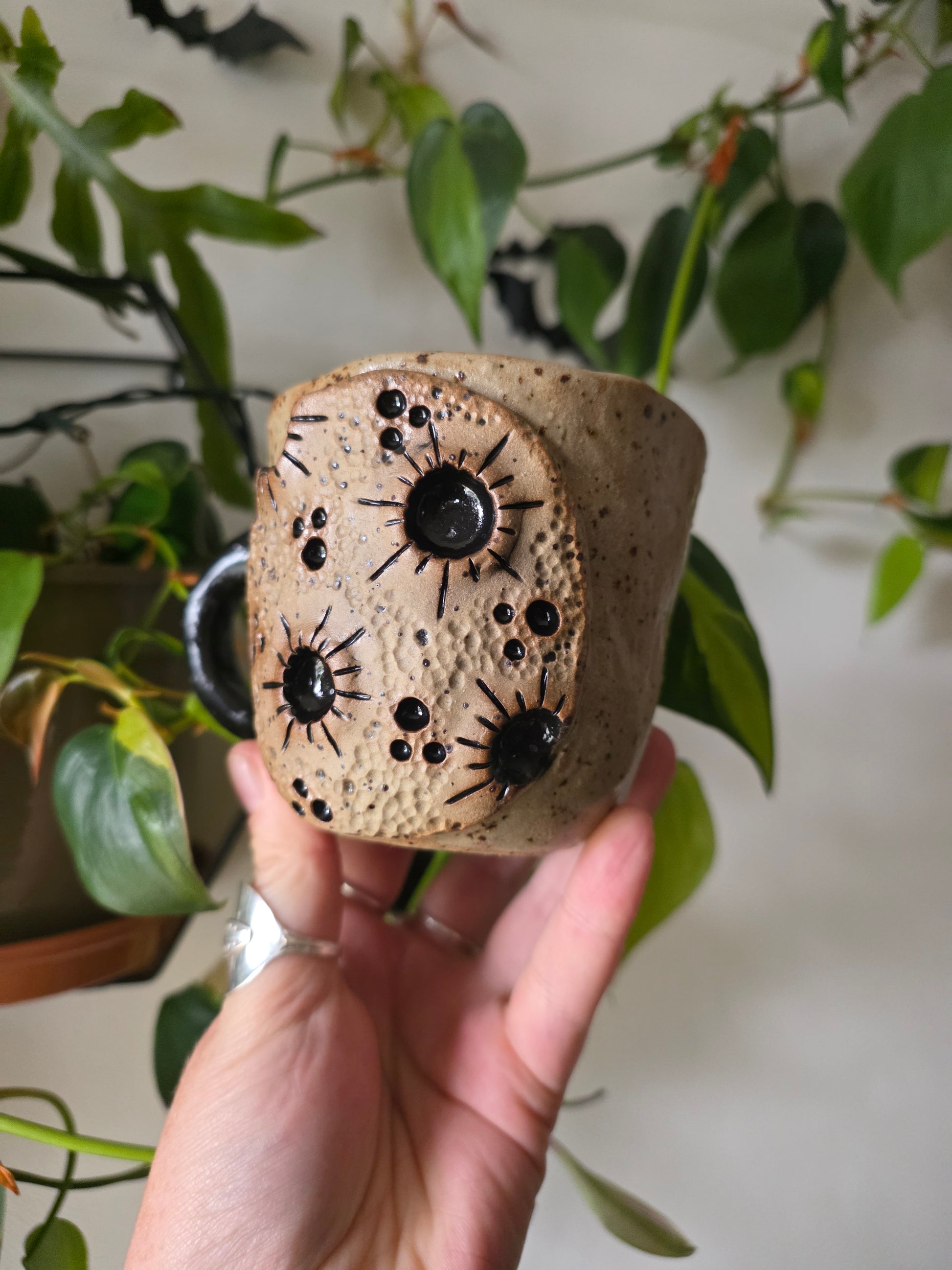 • Hand-made 10oz (Approx.) Mug with Full Moon details, clear glaze outside and inside, black glaze on moon and handle and high-fired to 1260°c •