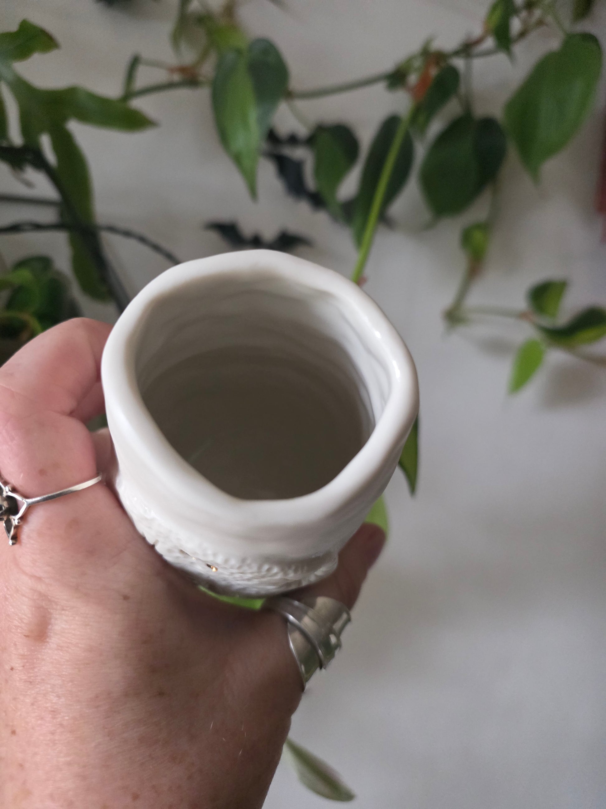 Hand carved and sculpted details, highlighted with clear glaze and 22k gold luster, and high-fired to 1280°c