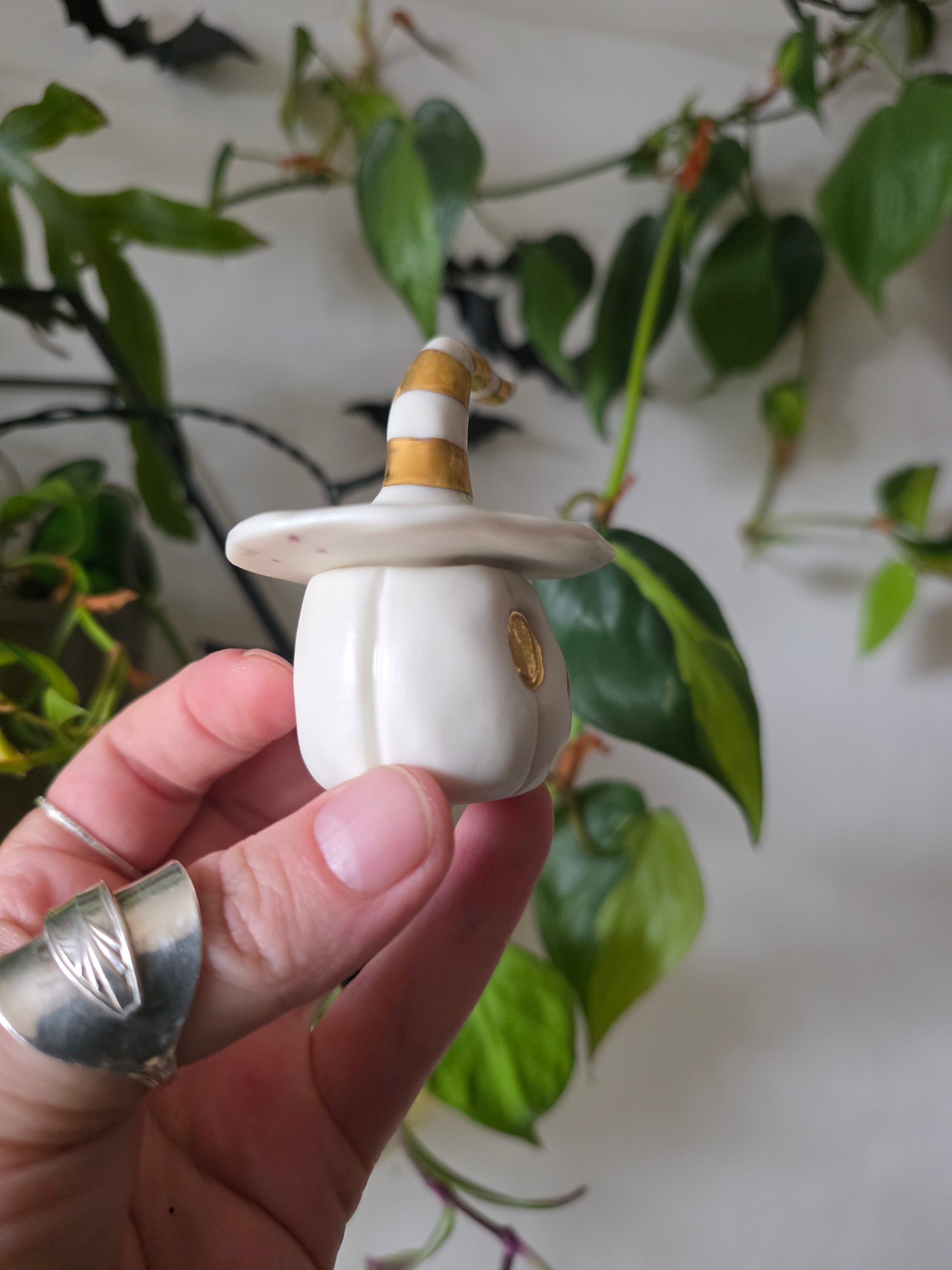 Extra small, white and gold Pumpkin Jack Jar